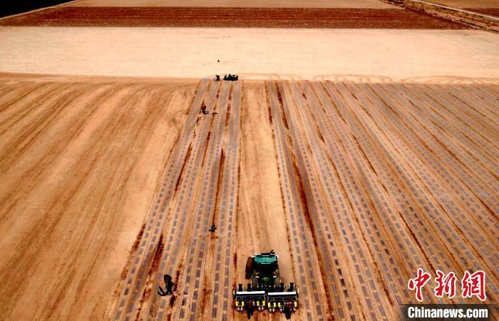 中新网乌鲁木齐4月10日电 (史玉江)眼下,在新疆宽广的田野上,大范围的使用现代农业技能的春耕春播正跑出“加速度”。