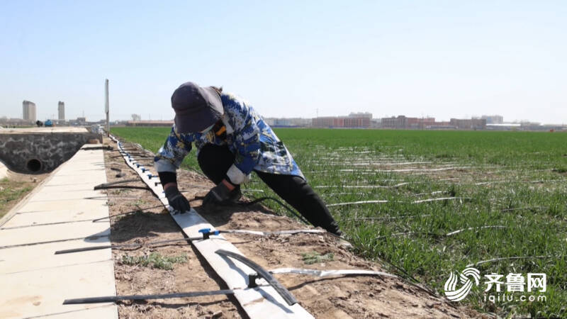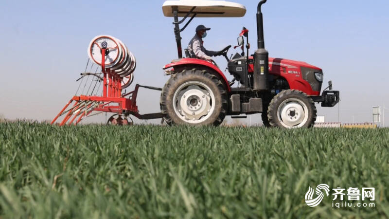 “咱们一亩地小麦大约用滴管1100米,经过机械直接铺上了,人工从地头辅佐固定一下就行,铺得也挺快,一小时能铺8亩地左右。”临邑县富民家庭农场场长王洪勇向记者介绍。