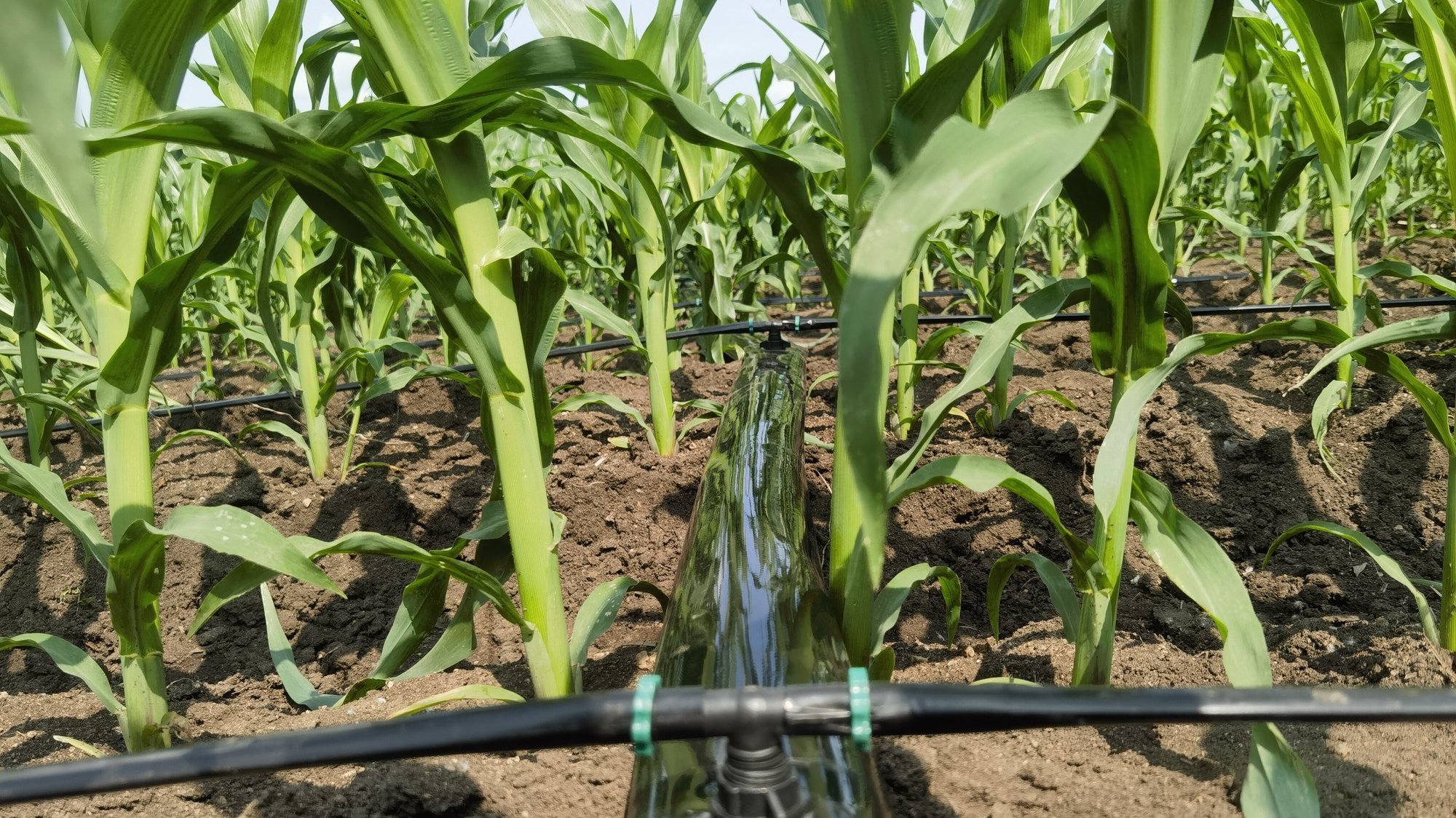 在北大荒农业股份友谊分公司第八管理区玉米地,一排排黑色的水肥一体化管道逐个铺设开来,好像一条条黑色长龙横亘田间,第三作业站职工李国强悄悄一拧阀门开关,灌溉水与肥液经过管道均匀地喷灌到玉米地中,不只让地步“解渴”,还让玉米吃上“精细粮”。