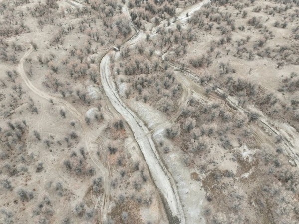 在阿纳库勒乡结然塔拉村乔木造林区,该点位长度10145米,宽度92米,面积1400亩。截至目前,工人们已完成了420亩地的滴灌带铺设,林床平整开沟打埂和1300亩地的灌溉压碱工作。